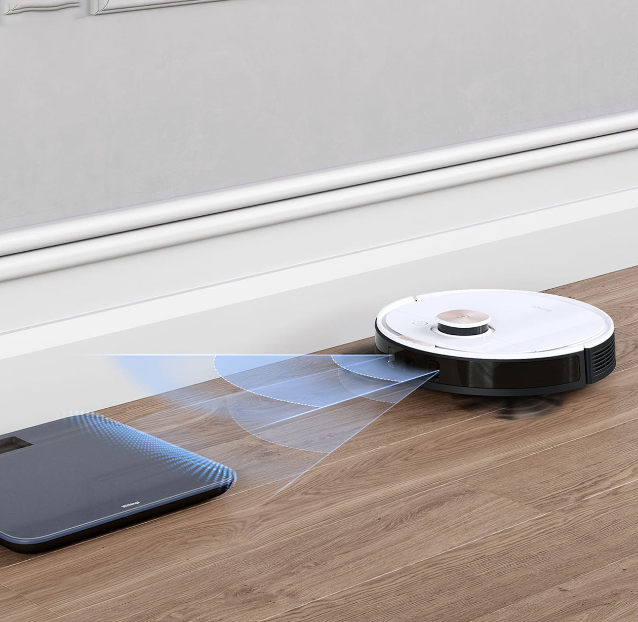 Advanced navigation powered by detection sensors and camera allow it to navigate under and around furniture, recognize rooms, specific areas (like in front of the oven), and avoid obstacles like stairs, cords, or pet bowls.